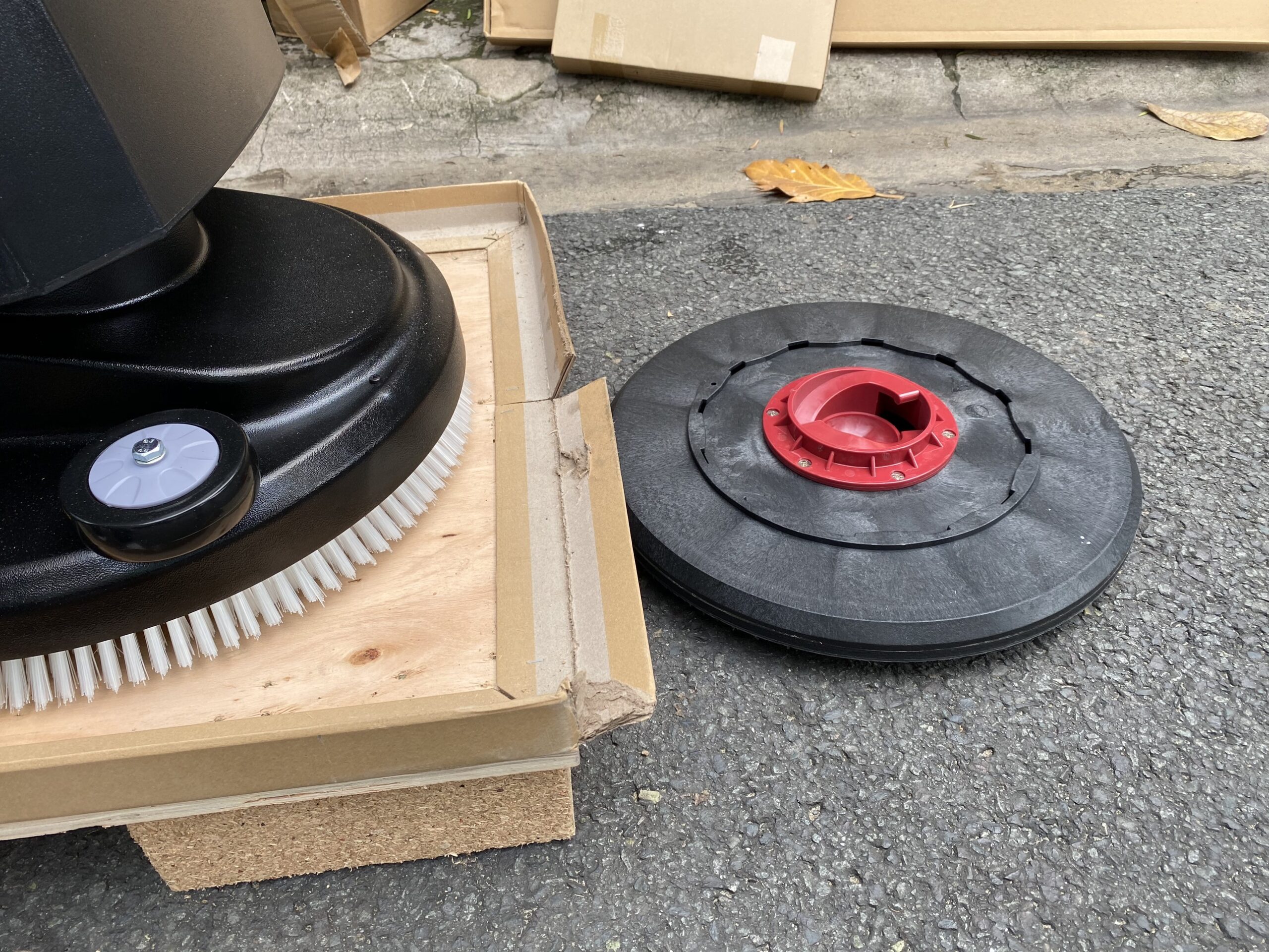 Khi sử dụng cần dùng thêm tấm pad chà sàn ( tùy màu đen – đỏ – trắng ) cho phù hợp với sàn nhà epoxy, gạch men, sàn mài bóng …