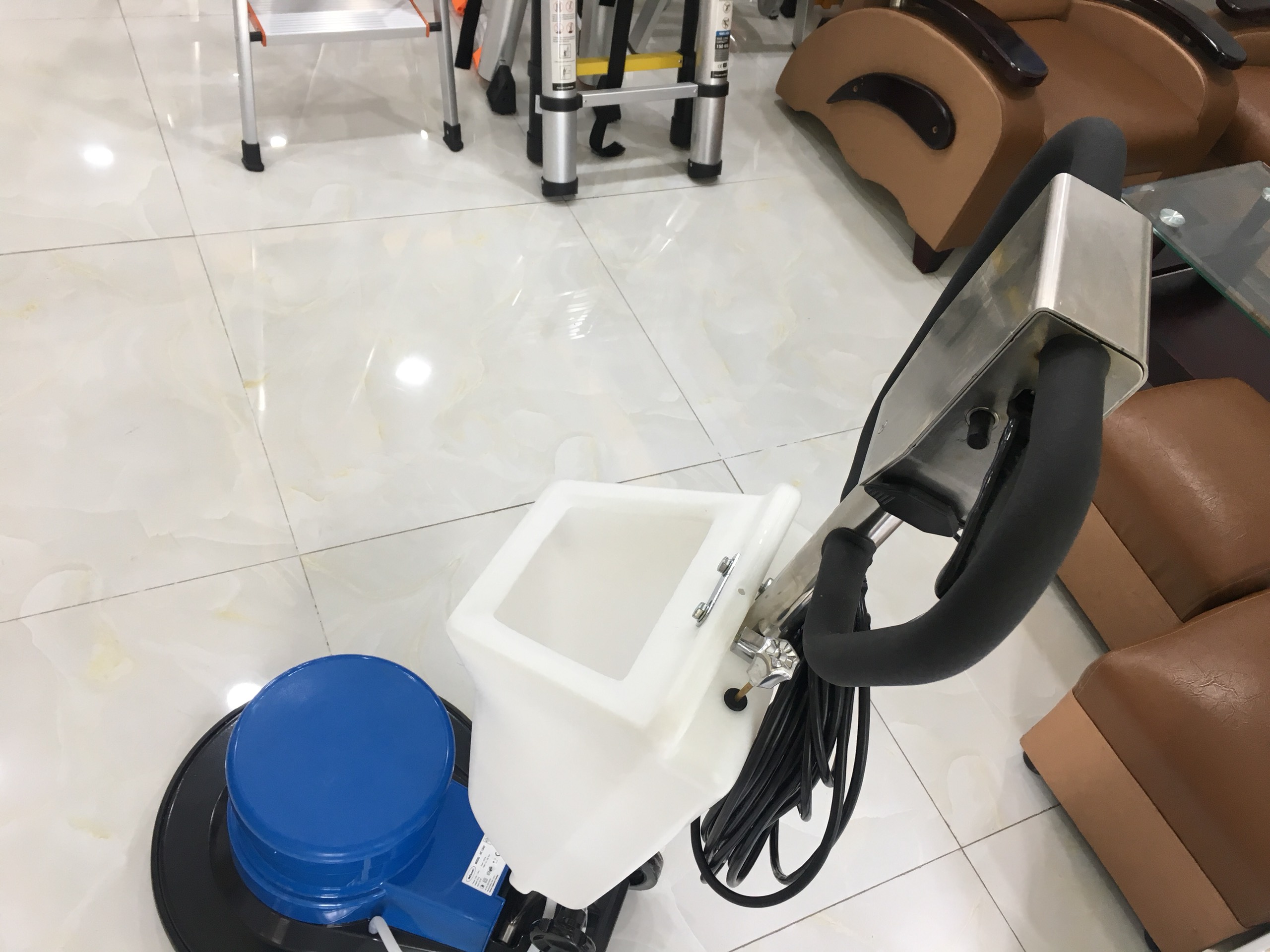 Chức năng: Chà sàn, đánh bóng sạch bề mặt bẩn của các lọai sàn gạch và giặt thảm.