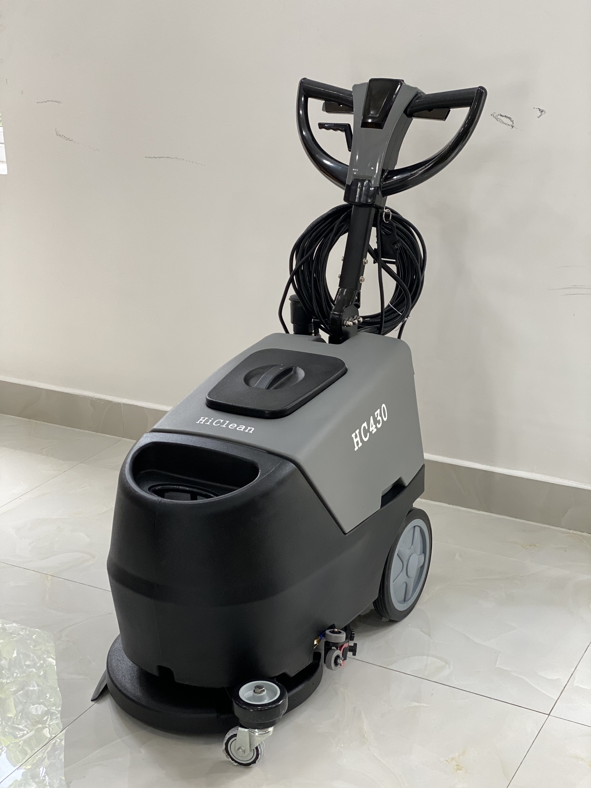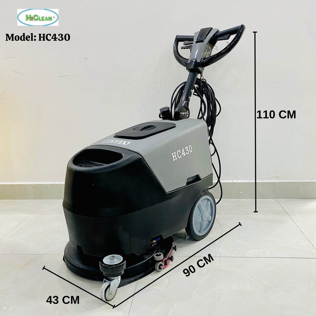 Máy chà sàn nhà xưởng HiClean HC430 giải pháp tối ưu cho việc vệ sinh sàn sạch nhanh chóng, tiết kiệm điện, tiết kiệm nhiên liệu và tiết kiệm chất tẩy rửa. Máy có chức năng đánh bóng sàn, an toàn cho người sử dụng.