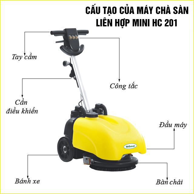 Máy chà sàn liên hợp HiClean HC201 gồm 03 chức năng gồm chà sàn, hút bụi, hút nước. Thân máy được cấu tạo bằng nhựa ABS chống va đập, bền với mọi thời tiết và môi trường xung quanh. Có ngăn chứa nước dung dịch và nước bẩn độc lập. Sử dụng cho nhà máy, bệnh viện, sân bay, ….và là máy vệ sinh, thiết bị làm sạch được nhiều người sử dụng nhất hiện nay.